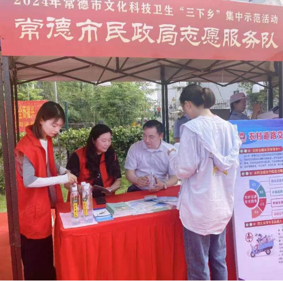 近日,常德市2024年文化科技卫生“三下乡”集中示范活动在武陵区丹洲乡丹砂村举行。市民政局党组副书记、副局长高波带领市民政局志愿服务队参加启动仪式。