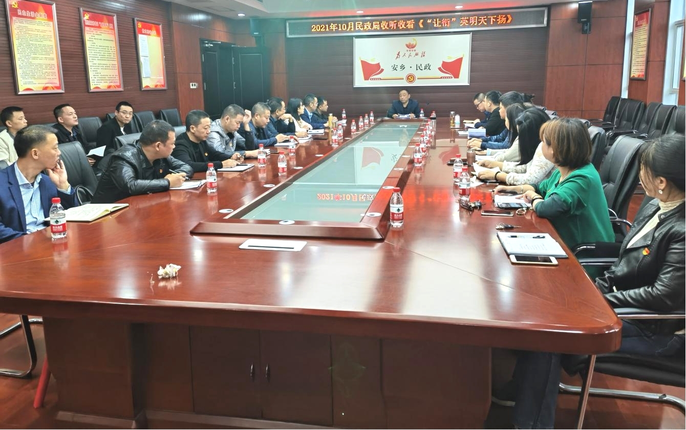 10月14日上午,为进一步深化党史学习教育,安乡县民政局召开全体党员大会,集中观看党员教育片《“让衔”英名天下扬》,引导和激励党员干部进一步牢记革命先辈的优良作风和光荣传统,赓续红色基因,永葆革命本色。