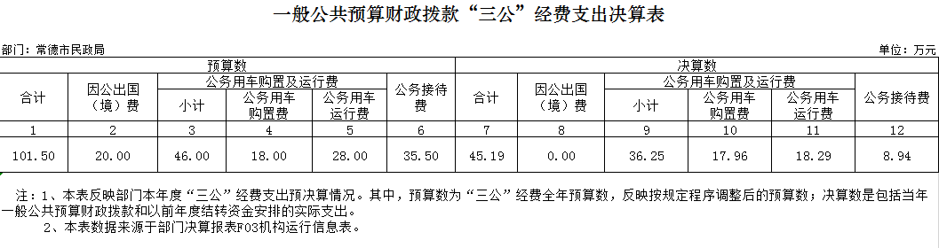 常德市民政局2020年一般公共预算财政拨款“三公”经费支出决算表
